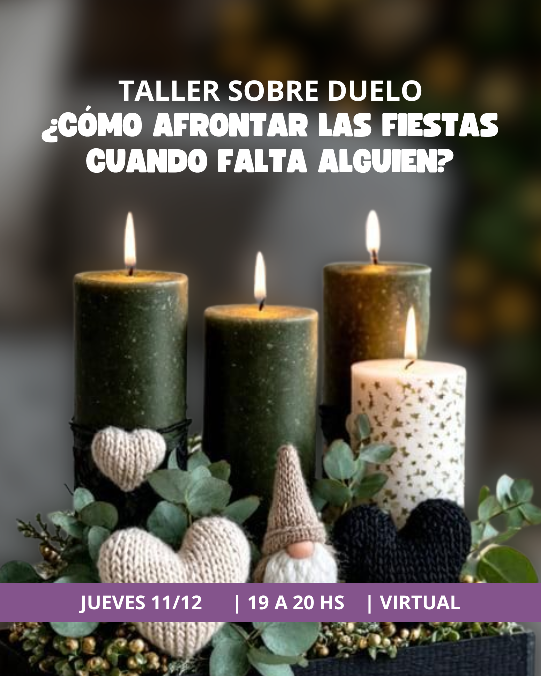 En este taller buscaremos comprender la dimensión particular que tienen las fiestas en los procesos de duelo, lo específico de las primeras fiestas sin nuestros seres queridos, las particularidades intra familiares y contextuales, y brindaremos recomendaciones y herramientas para transitar este dolor de la mejor manera posible, comprendiendo que la muerte es parte de la vida.